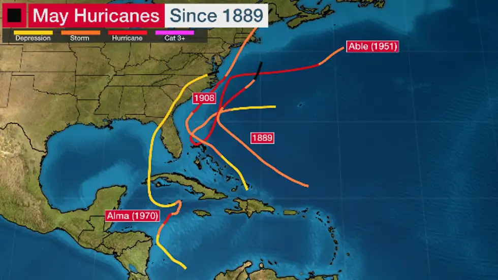 There have been four May Hurricanes since 1889. Two were in 1889 and 1908 when the meaningless concentration of CO2 was even less prevalent. The next was in 1951, and the last was in 1970 when the weather fascists were promising we’d all freeze to death (global cooling, not warming).