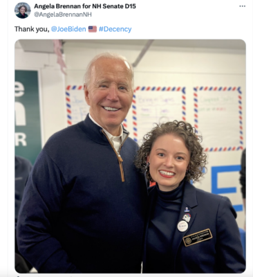 Isn’t that a lovely picture of Angie Brennan and the imposter-figurehead-President Joe Biden. But does Little Miss Angie know she is standing with a White-Supremacist? For example, Biden believes that White people like him should get to decide who is a “real Black” and who is not. Remember this from 2020: