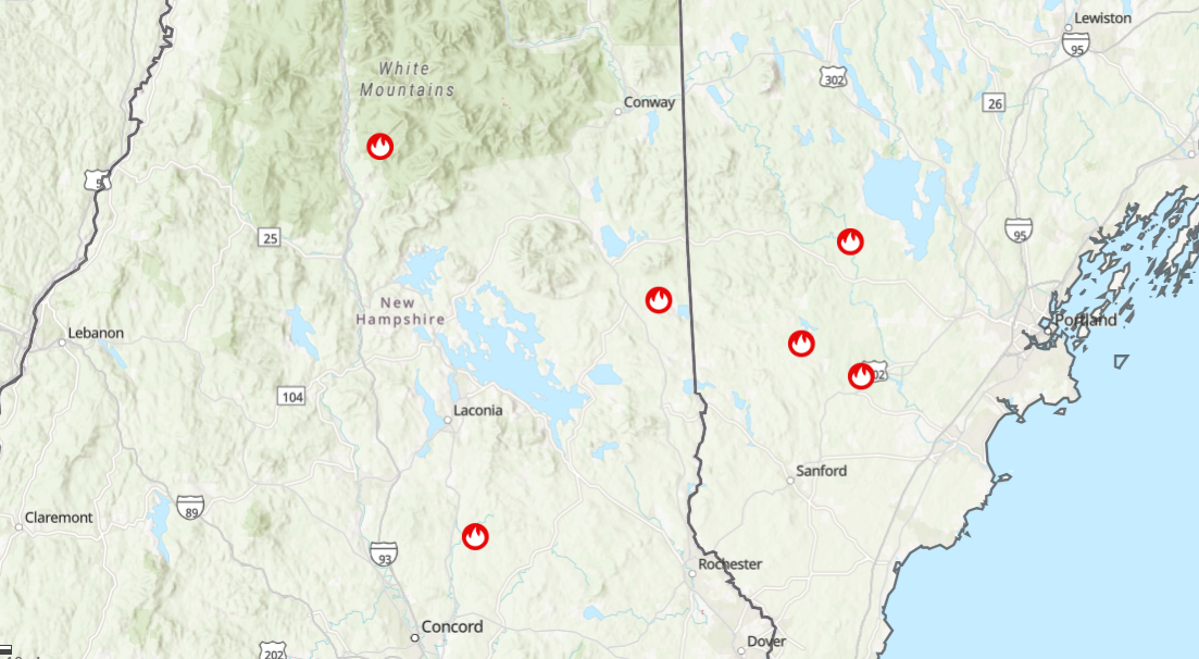 If you look at this wildfire map, there are zero in New Hampshire or Maine.