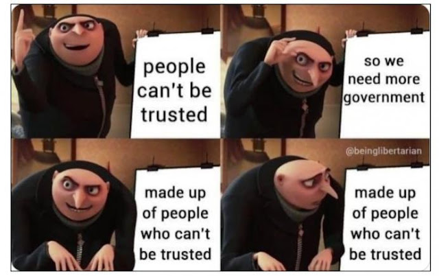 A lot of people have no problem with panels 1-3; they somehow believe that being appointed or elected or hired into governmental jobs somehow erases human weaknesses. Same with having a MD or PhD after your name… suddenly they become transformed into beings made from finer, more noble clay.