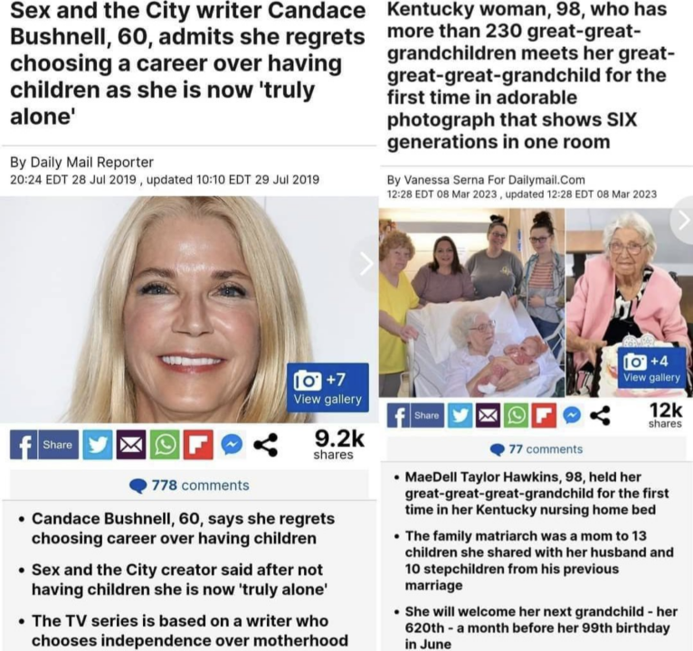 All deliberate. A strong nuclear family is one of the foundational elements of Western civilization. Of course it’s under attack. Just as is having a posterity. Consider, as a concluding thought, the tale of these two women: