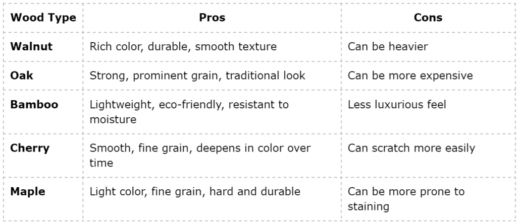 Wooden phone cases can be made from various types of wood, each offering different characteristics and benefits. Below is a comparison of popular woods used in phone cases.