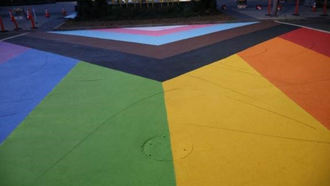 Spokane, Washington, made news after some (presumably bigoted) hooligans marred up a pride mural with tire (skid) marks. The devout are beside themselves with anger and guilt, “condemning these vile acts on no uncertain terms.”