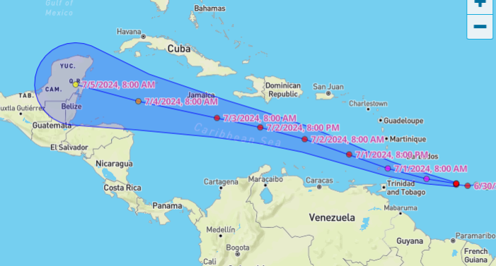 Its current track, unfortunately for the fearmongering media, will take it across Grenada, just south of Jamaica, where it begins to lose strength. Beryl’s projection ends at the Yucatan Peninsula as a Cat 1. – no US landfall.