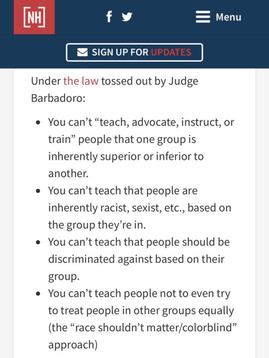 Earlier this week (I’m writing this on 5/30) a federal judge nixed New Hampshire’s anti-discrimination law. Many States have passed laws prohibiting CRT … Critical Race Theory, which is a euphemism for anti-White racism … so it’s fair to say the judge who nixed New Hampshire’s anti-discrimination law was applying the Left’s woke-constitution.