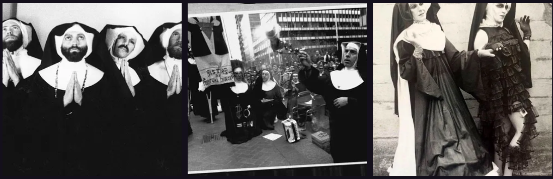 The Sister’s of Perpetual Indulgence were founded on Easter of 1979 (officially 1980), when three gay men going by the names Sister Vicious PHB, Sister Missionary Position, and Baruch Golden, decided to mock the Catholic church by wearing a heretical form of traditional habits worn by 14th century French nuns through a San Francisco nude beach, carrying a prop machine gun for protection.