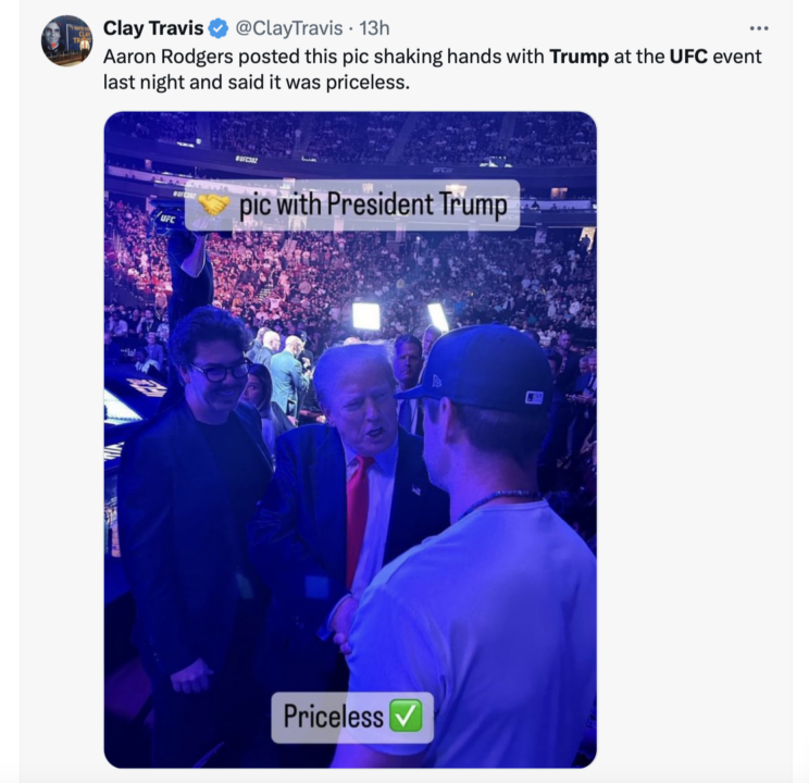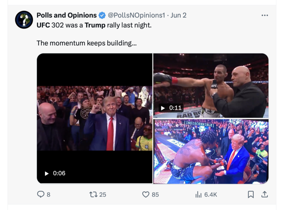 Incredible show of support for Donald Trump at last night’s (6/1) UFC 302. The pop he got when he walked in with Dana White gave you goosebumps. And it was not just the crowd … IN NEW JERSEY … showing Trump the love. The fighters did to … shaking his hand, taking selfies with him, giving him shout-outs in the post-fight interviews.