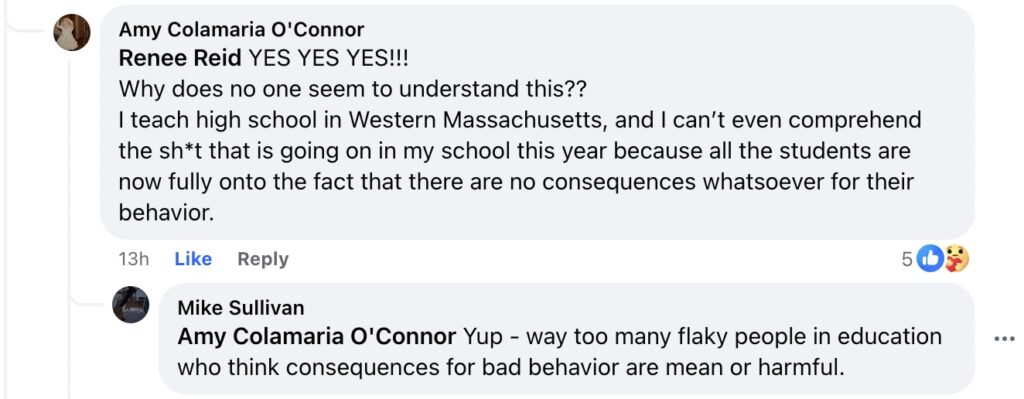 I believe there are many factors contributing to this problem. Parents who believe the school is a daycare center for their children are failing to do their job of raising respectful children. As a parental rights advocate in New Hampshire, I make no excuses for poor parenting. This is becoming a bigger problem that schools must deal with. But even if parents are failing to raise respectful children, that doesn’t mean that schools should be failing students, too.