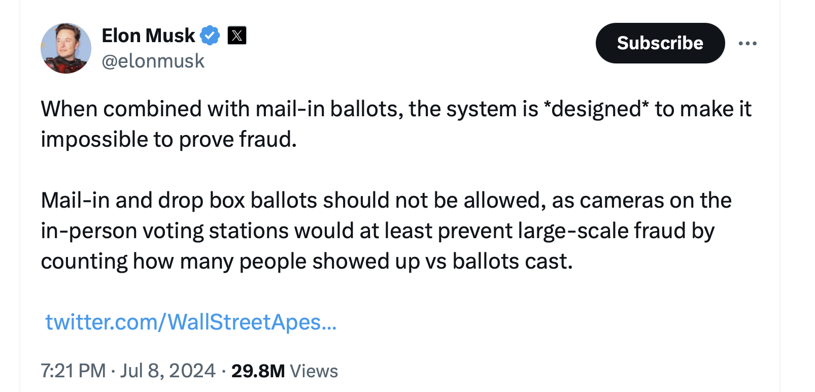 Finally, thanks to Elon’s purchase of twitter, people who are willing to believe what they see and hear, and who can think for themselves, know that our elections are SHAMS. Thank you, Elon.