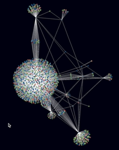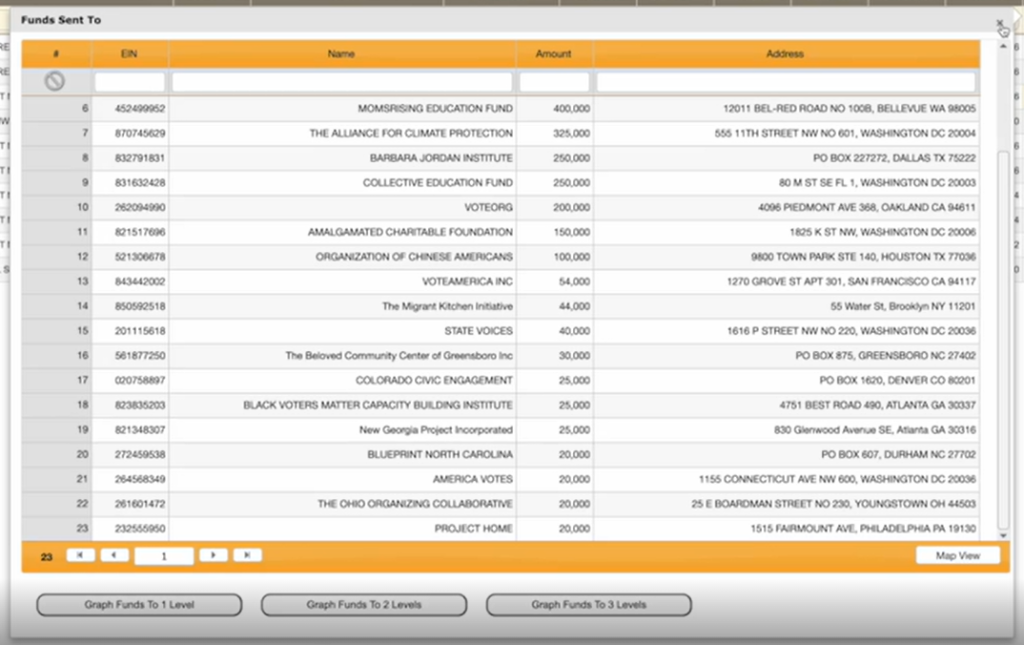 The following 2 screenshots show data related to one NGO, the Tides Foundation (detailed video specific to this organization here — https://rumble.com/v4zui6u-tides-video.html ) Screenshot #2 shows a 3D model of the financial relationships the Tides Foundation has with other NGOs. The graph displays can be 1 level to up to 30 levels deep. Evidently, at a certain level, the display simply is virtually all-white due to the inter-related nature of the NGOs.