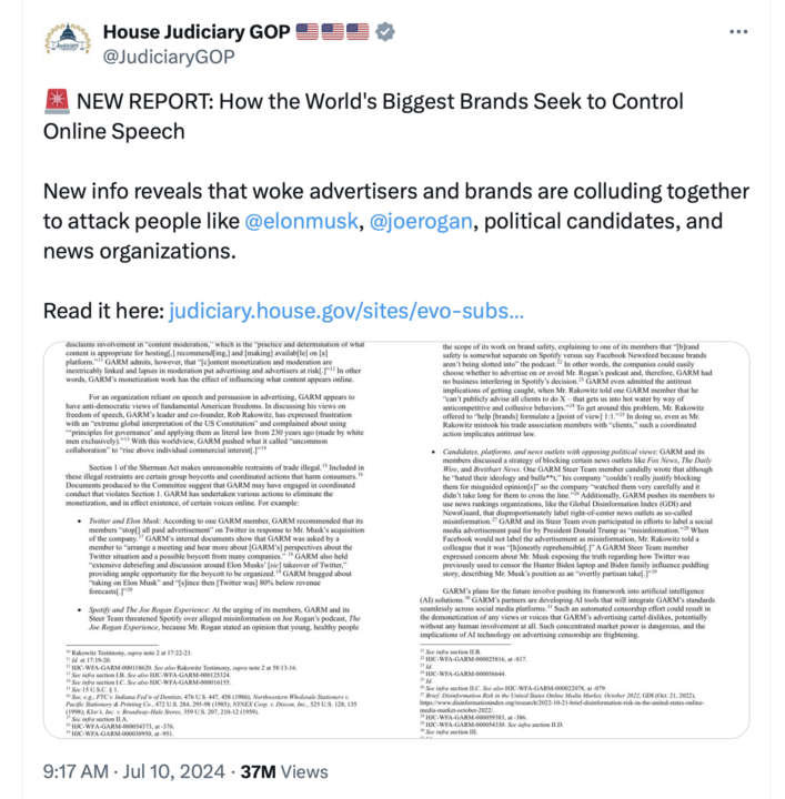 Yet another example that much of what Sweeney, Berry, etc. are spewing is nonsense is Big Business colluding to censor anyone with a bull-pulpit who is not part of the woke hive-mind.