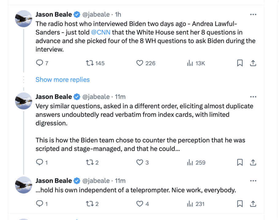 It is open season on BidenX after a radio host who “interviewed” him two days ago leaked to CNN that the entire interview was a sham.