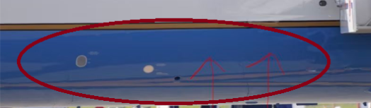 On the fuselage, there are lots of open spaces where a bustling horde of Marxists ought to be. That whitish area at the bottom edge of the image fading up into blue is where the many sign-waving happy people should be, but since they don’t exist, there’s nothing there. Just uninterrupted landscape all the way to the skyline.