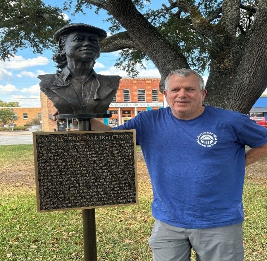 Thanks to the efforts of Attorney Mike Parker and Sharon Jones of Carthage, Texas, Dr. Jefferson’s hometown, a bust of Dr. Jefferson, along with a historical marker, was placed in Anderson Park in February of 2018. My wife and I recently had the chance to visit Carthage and view the bust and marker which – reads:
