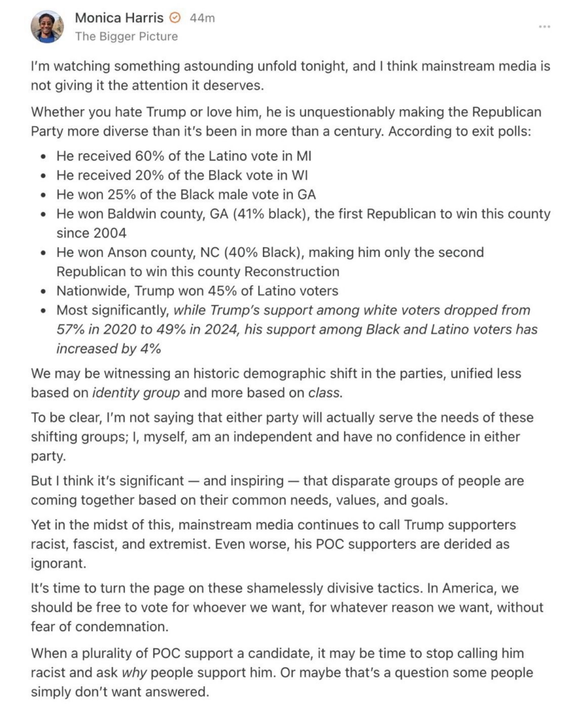 Despite massive gains among minorities, it will be raaaaaacist / Faaaaascist / Naaaaaazi from here on on. Insurrectionist will also be a mantra. Yet the cold numbers do speak: