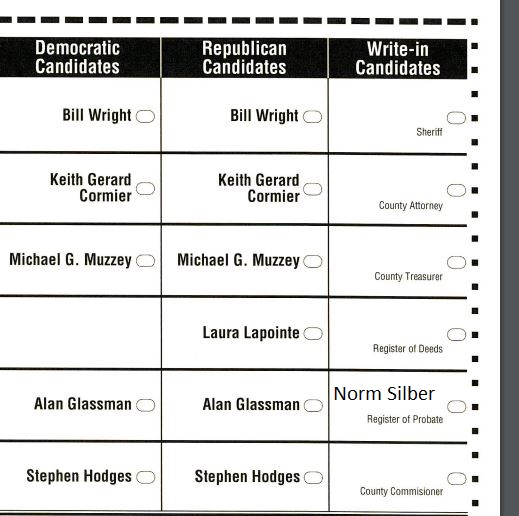I’m writing in Norm Silber for Register of Probate simply because of that CfB endorsement.