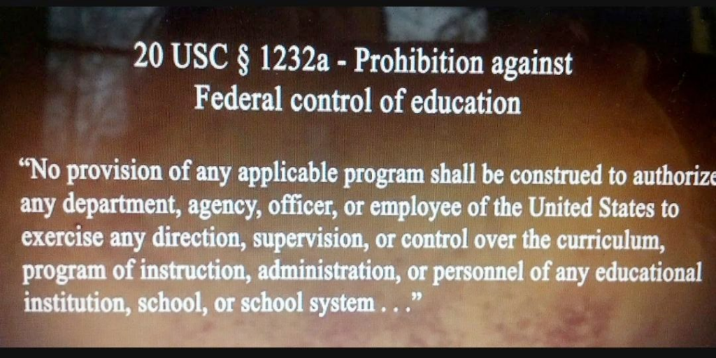 Constitutionally, education is reserved to the states. The state department of education “voluntarily” accepts federal grant requirements, making it eligible for federal funds. Then it imposes federal mandates upon our public schools. Our state, like other states, has been bribed to circumvent the Constitution in accepting uniform Common Core standards, Social Emotional Learning behavior modification, Statewide Longitudinal Data Systems used for data tracking of students values, attitudes and beliefs, etc. in exchange for federal dollars.