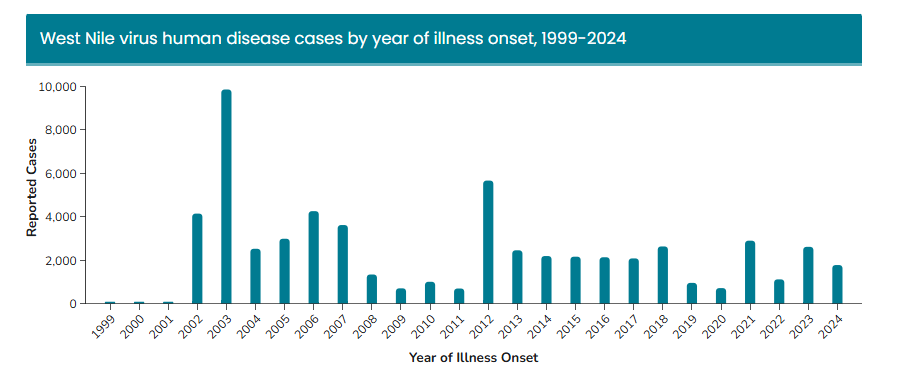 So far, in 2025, 433 human cases of West Nile virus have been reported in the US—none in NH.