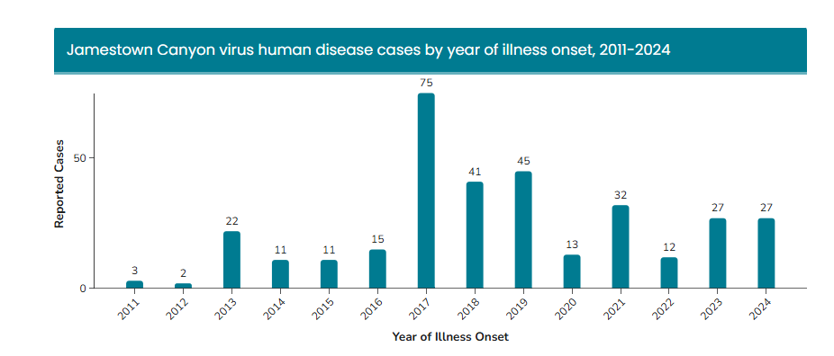 There have been three human cases of Jamsetown Canyon virus reported in 2025—none in NH.