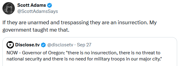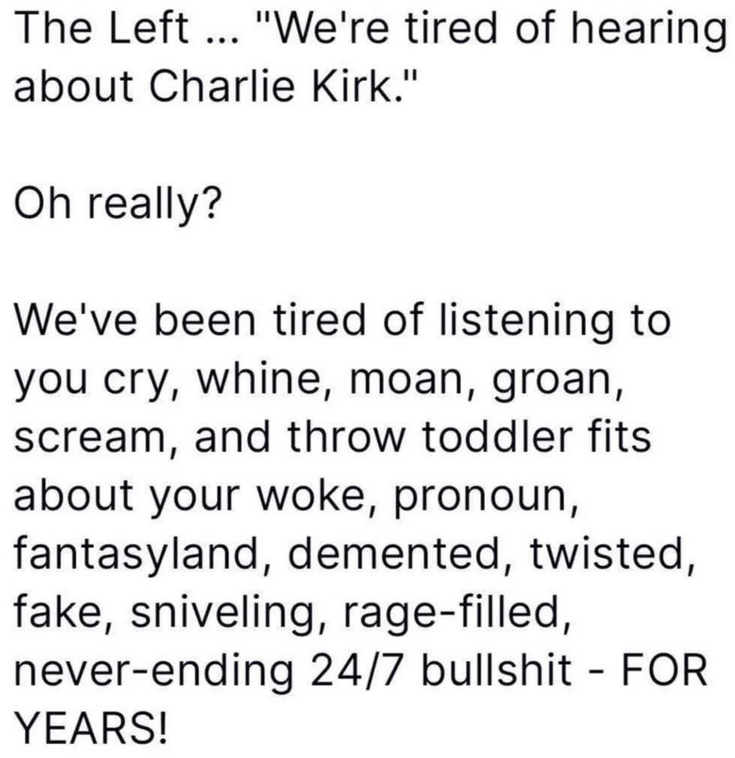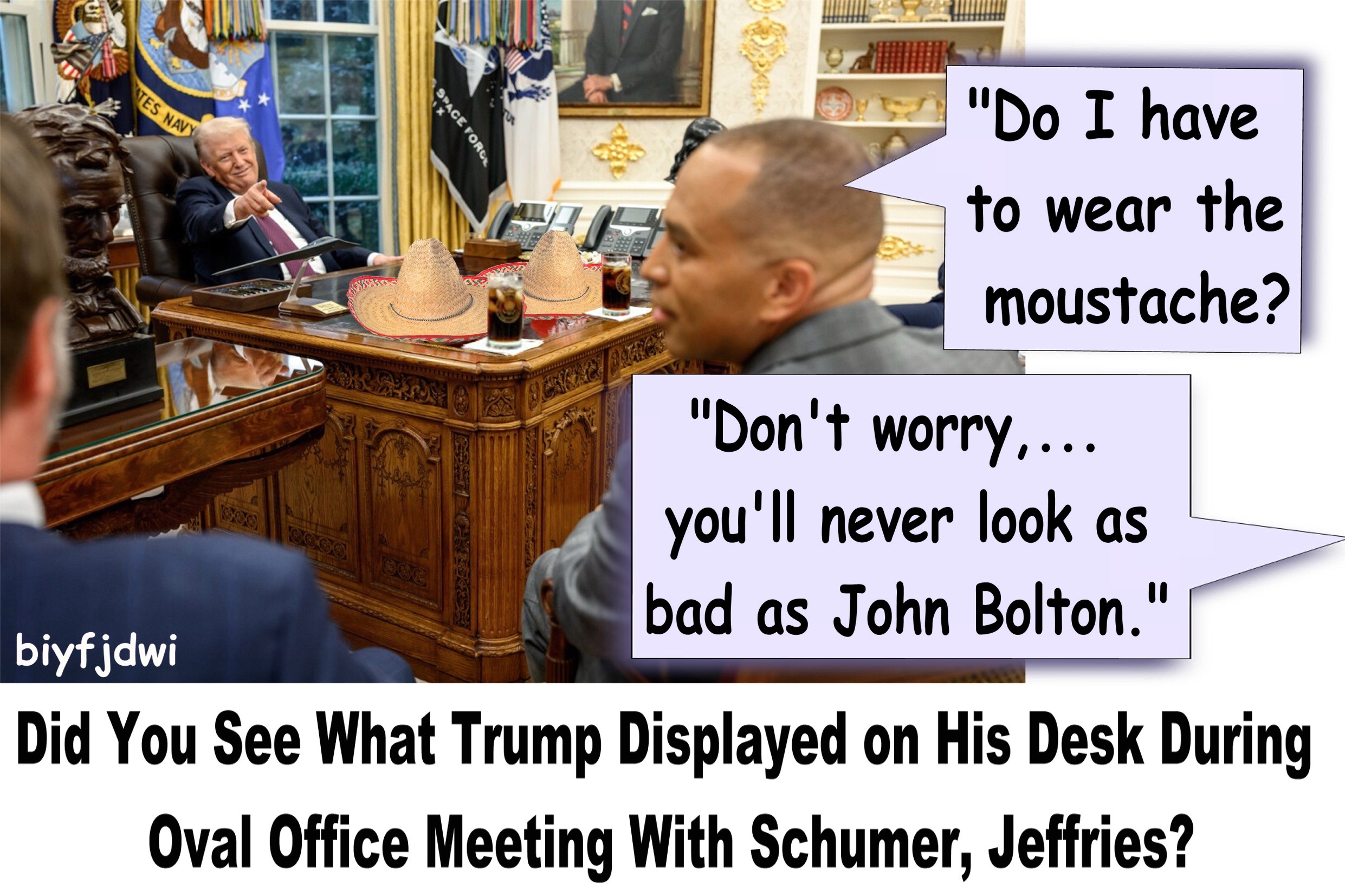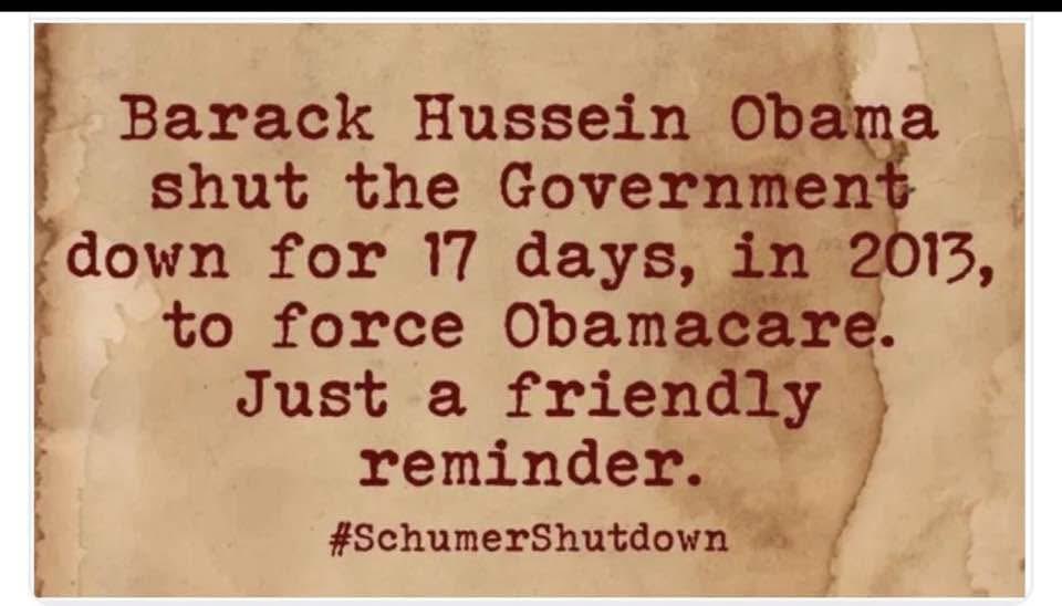 It’s the first Friday in October, the third day of the Schumer Shutdown, and the first weekend in several weeks that I’m not attending an event where they are serving BBQ. Plenty of memes, though, with thanks to our meme hunter/gatherers for answering the call week after week.