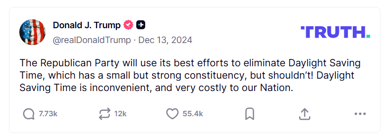 If he didn’t have enough Republican votes, he could probably go on Truth Social and monologue about how fabulous Eastern Standard Time is. The greatest, most beautiful thing ever to happen to time, it really is. The left would be clamoring to end it while demanding the immediate release of all the files.