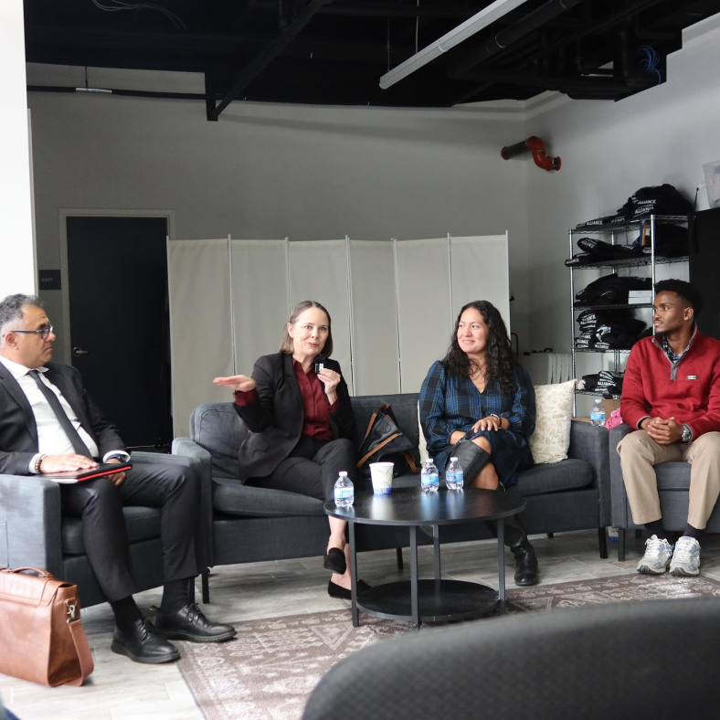Maine Secretary of State Shenna Bellows, who is now running as a Democrat in the 2026 Maine gubernatorial election, is prominently featured speaking to the COA in the first picture published by organization in their blog post regarding their 2024 election outreach initiative.