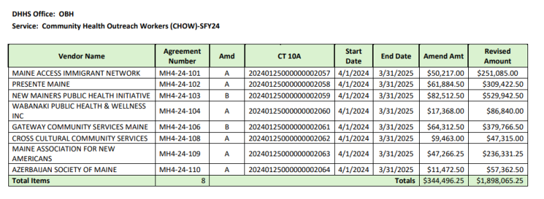 Maine DHHS initially funded the CHOW program with a $1.5 million no-bid contract, expecting the program to run through March 2025.