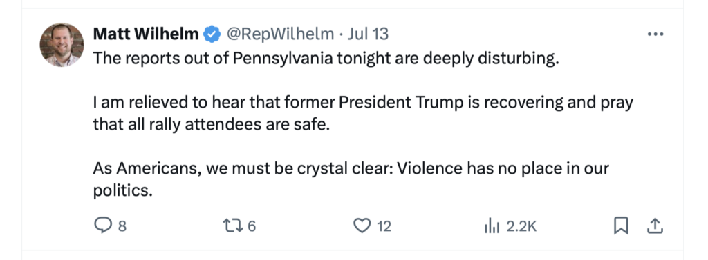 Matty Wilhelm, the Leader of the New Hampshire House Democrats, tweeted a rejection of political violence after the failed assassination attempt on Trump. It strikes me as one of those things Communists say only because they feel that that they have to say it, but don’t mean.