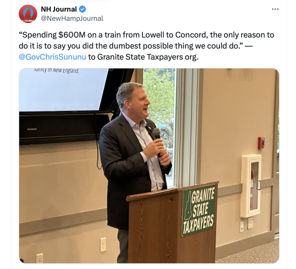 And here is the mighty Sun-King doing just that. The real threat is the choo-choo train (a figurative rounding error on what the State spends on public education), not our runaway spending on public education, not the fact that there is no transparency regarding spending on public education, not the fact that New Hampshire may be spending more on a corrupt DEI bureaucracy than it would on commuter-rail.