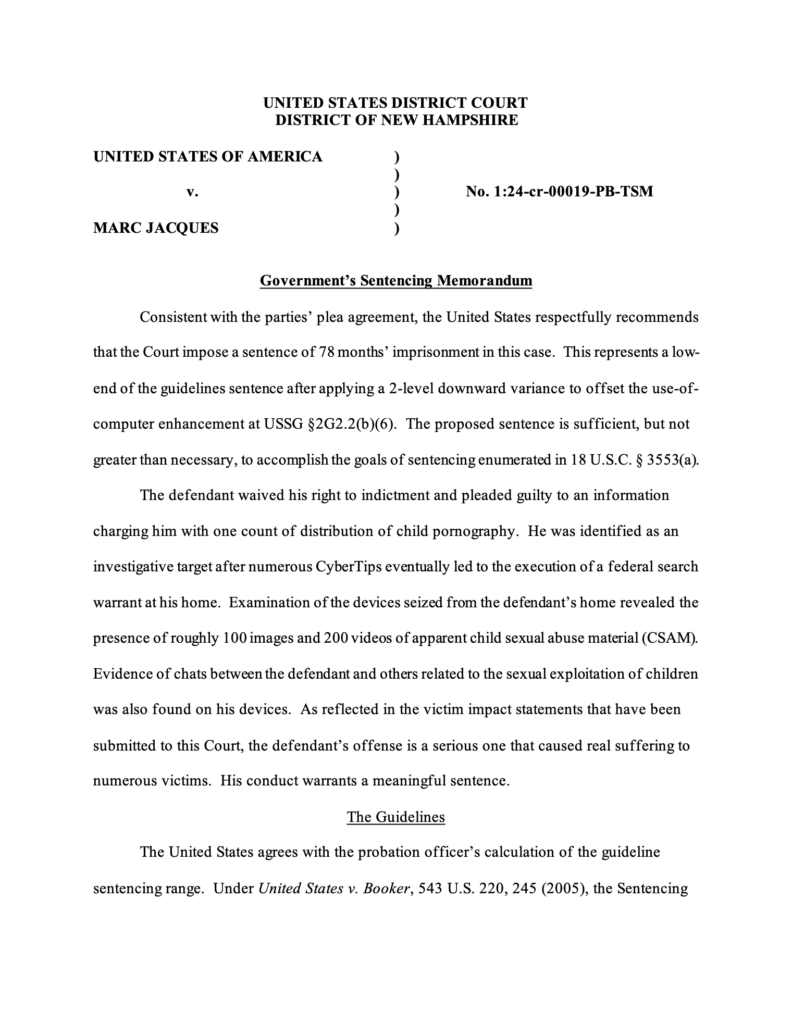 This year students, children and families were subjected to sharing the soccer field with a convicted sex offender. Court documents show the father of a soccer player for Kearsarge, Marc Jacques, pled guilty to possessing and distributing child sexual abuse images. He was reportedly taking pictures of minor females in the community and superimposing their faces onto sexual images. He then shared those images with other sex offenders along with the child’s Instagram account. He also urged a sex offender to contact a child. He is paying restitution to four identified victims. Marc Jacques was caught with hundreds of child sexual abuse images on his devices, clearly making him a danger to children.