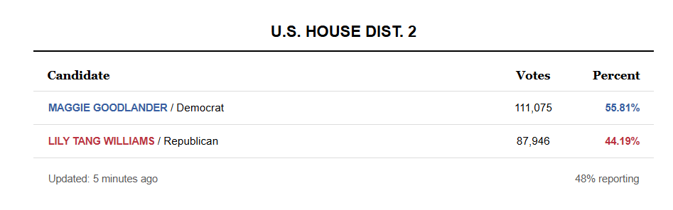 In CD2, Goodlander appears poised to head back to DC (as a congress critter), but this race has not yet been called.