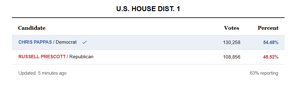 CD1 was called for Chris Pappas around 9:30 – Prescott has conceded.