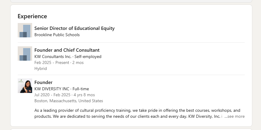 Is the district hoping to have her back in 2025 and hide what it truly is? That’s what Kalise is doing. Hiding DEI and CRT behind the phrase “cultural proficiency.” She’s even changed the name of her “business” from KW Diversity Inc. to KW Consultants.