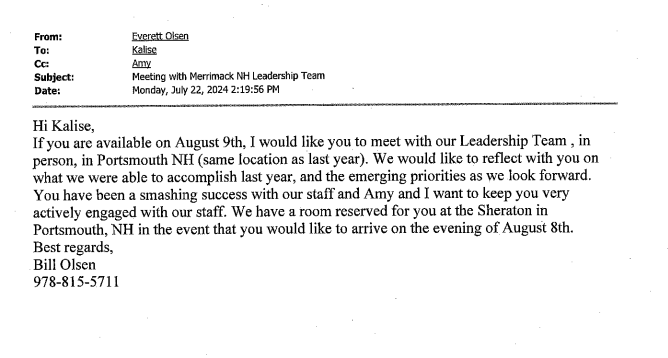 The Merrimack School District has a relationship with a woman named Kalise Wornum.
