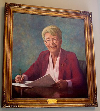 There is a more esoteric detail about Vesta Roy’s biography: her husband was an optometrist. Stay with me on this, especially if you live in District 13, but I want to first point out the oil painting of her that’s on display outside the Senate Chamber entrance and next to the stairwell. Regardless of who your eye doctor is, you will SEE that Vesta was NOT an ugly woman.