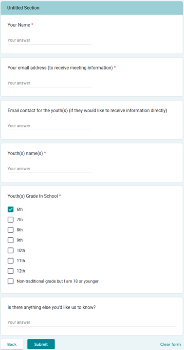 If you choose “Me! I’m a youth,” this is the next form it displays.