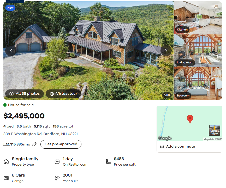 The estimated monthly mortgage of nearly 16K/month limits its appeal to the wealthy and curious, but your kiddos could attend the infamous Kearsage School District—the educational home of nationally known trans-athlete Maelle Jaques and his convicted sex-offender father.