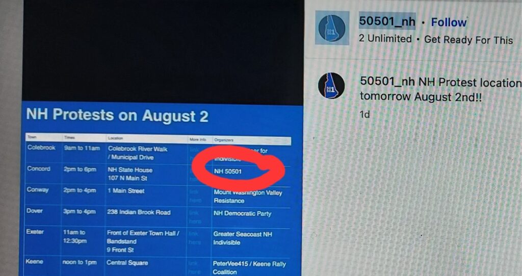 The NHPR story doesn’t mention another protest in the vicinity when 50501NH would have been there, if the event was not changed or canceled, but again, these “protesters” don’t look like your typical 50501 types.