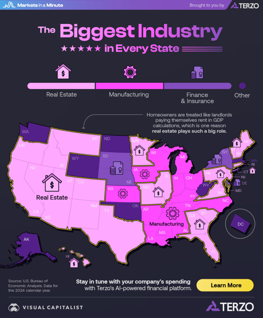 What if more alleged liberty on paper is bad for freedom in practice? And does it matter that ‘Real Estate’ is the number one generator of GDP in New Hampshire. That’s according to Jenna Ross at Visual Capitalist. Defined as “rent paid by renters, property taxes, construction, remodeling, and brokers’ fees.”