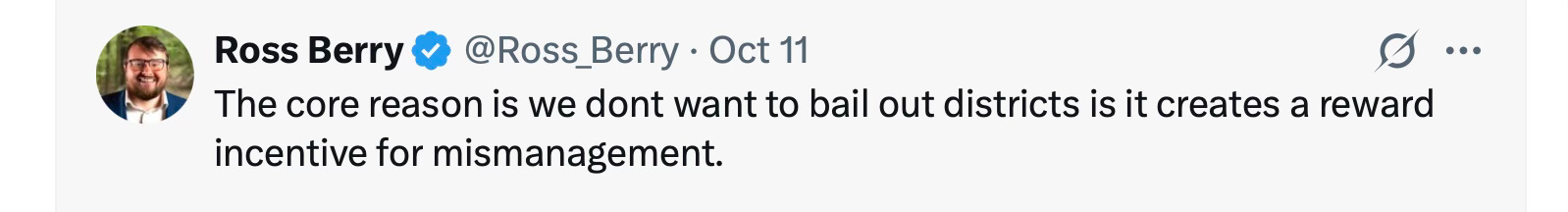 House GOP leadership has chosen the wrong “hill to die on.” Our advice to the “rank-and-file” is “don’t.” Ward’s amendment is a practical, common-sense solution to the problem of avoiding ‘collateral damage” to blameless schoolchildren, while not “bailing out” negligent administrators and local politicians.