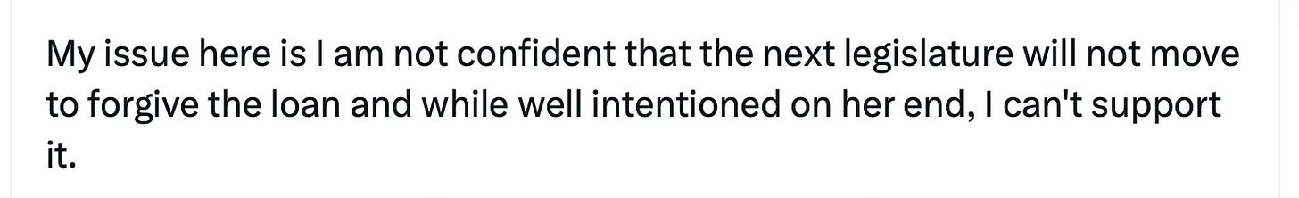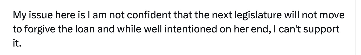 It is unfortunate that Ward described her proposal as a “loan.” It is much more accurately described as an “advance payment.” Language from Ward’s amendment: