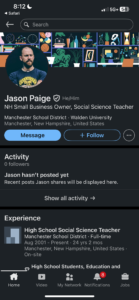MANCHESTER, NH September 12, 2025–A history teacher at Memorial High School in Manchester has celebrated the murder of Charlie Kirk in his classes. According to information received by Girard at Large early yesterday evening and shared on the Girard at Large TV show, Jason Paige is reported to have rejoiced in the political slaying of Kirk. According to www.opengovpay.com, Paige earns over $85,000 per year. In 2011, Paige had a run-in with the law on animal cruelty charges.
