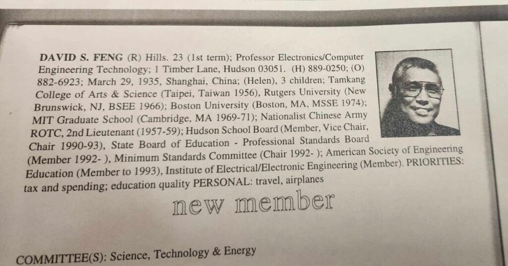 I never miss an opportunity to tell a man he’s wrong, especially when I hate his guts. So I delight in an opportunity to do that to Rep. Ming because it has come to my attention that the first Asian rep was the late David S. Feng (1935-1997), who represented Hudson. I will add that the Hon. David S. Feng was a Republican.