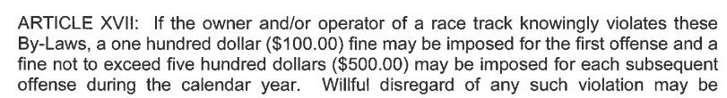 Covering the cost of an overnight police detail, over which the track owner has no say, would be significant. Speaking of which, the other change I found, there could be othersI missed, is fines. Check this out.