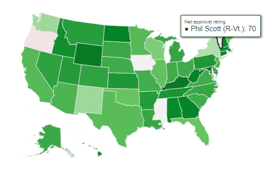 The details are behind a paywall, but according to Morning Consult, Vermont Governor Phil Scott has an 81 percent approval rating. Did they poll people who don’t live in Vermont, or, more likely, he’s seen sympathetically as an abused spouse? Scott is a victim, like them, of the immovable object that is Vermont’s current veto-proof Democrat legislature. It knows better. It listens to no one else. Perhaps voters commiserate as prisoners on the same barge.