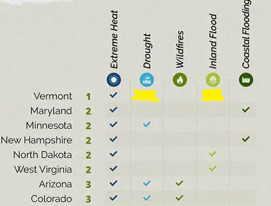 Since I live there, New Hampshire came in second best (score of 63—Vermont’s was 30). We have a coast so coastal flooding, but absent historical context (actual science), this claim has no relevance. I suspect the entire report is similarly disabled.