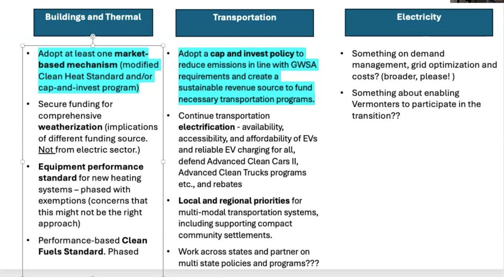 As Richard Cowart of the Climate Council’s Cross Sector Mitigation subcommittee noted, somewhat obviously, “The only way to promote electrification, particularly for low and moderate income households, and to promote weatherization in those households, would be to create a revenue source that gonna help them do that…. And we should be really clear and make sure that the revenue source is going to actually be created to promote the actions that we’ve identified as essential.”