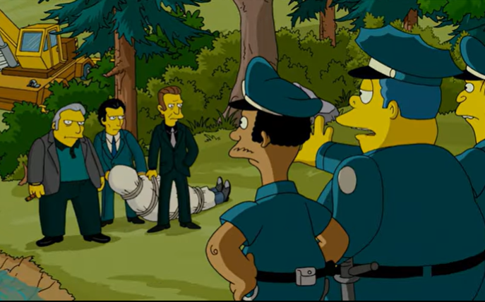 While we wait, I couldn’t stop thinking about how “JV Team” the security was at Butler, PA, which reminded me of a scene from the Simpson’s Movie.