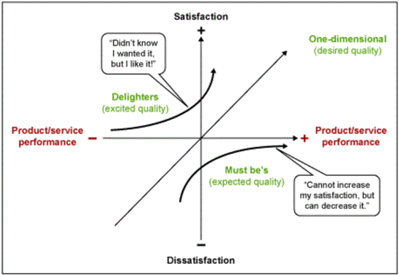 In the course of my career I’ve taken many classes and seminars. One such course was an introduction to the subject of quality, wherein we learned about the Kano Model of Quality (header image from the link), among other things.