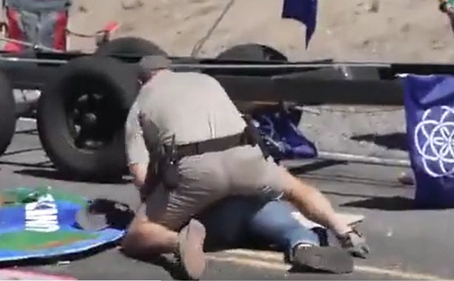 Burning Man is an annual event that attracts some interesting people. It’s like an Elite-secular-cultist-hippy gathering (Vermont has a very progressive local version). Three days ago, traffic to the event was backed up because some elite hippy climate cultists had blocked a Nevada road on Tribal Land. The Native American Tribal Police responded.